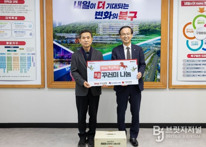 브릿지저널 윤나영 기자 | 부산 북구는 30일, BNK부산은행(BNK금융그룹 희망나눔재단)으로부터 지역 내 취약계층을 위한 ‘설맞이 복꾸러미’ 650상자를 전달받았다고 밝혔다.