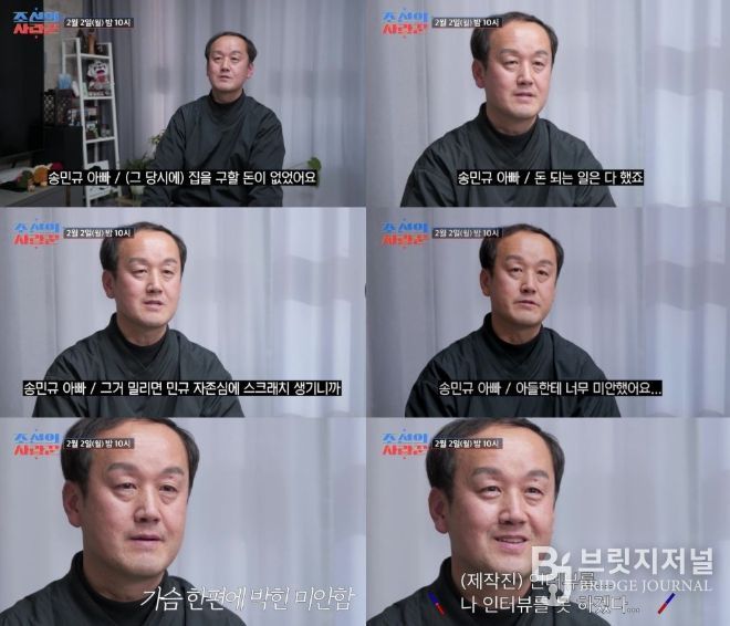 브릿지저널 김경미 기자 | TV CHOSUN 극사실주의 다큐 예능 ‘조선의 사랑꾼’에서 '국대 출신' 축구선수 송민규의 아버지가 아들의 결혼식에 앞서 가난했던 과거를 회상한다.