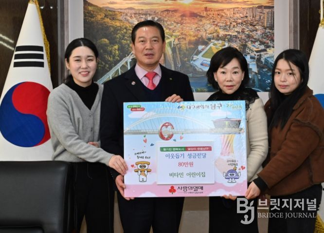 브릿지저널 김진석 기자 | 대구 남구 국공립 비타민어린이집에서는 지난 1월 29일 남구청을 방문하여 이웃돕기 성금 80만원을 기탁했다.