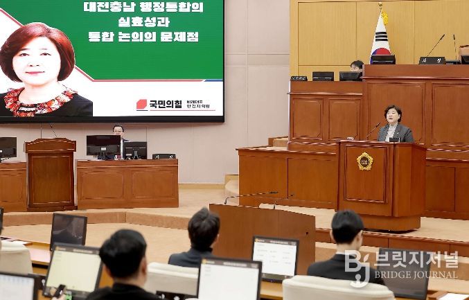 브릿지저널 정보영 기자 | 대전시의회 행정자치위원회 안경자 의원(국민의힘, 비례대표)이 2일 열린 제292회 임시회 제3차 본회의에서 5분 자유발언을 통해 대전·충남 행정통합의 실효성과 논의 과정의 문제점을 지적했다.