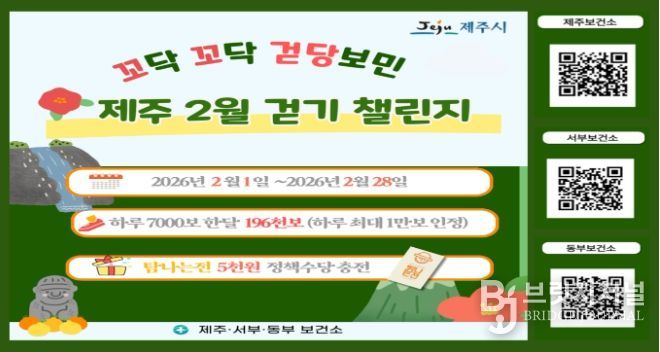 브릿지저널 정보영 기자 | 제주시는 시민들의 일상 속 걷기 실천을 활성화하기 위해 오는 2월부터 ‘꼬닥꼬닥 걷당보민’ 건강 걷기 챌린지를 운영한다.