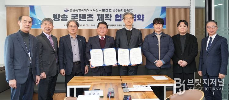 브릿지저널 윤나영 기자 | 강원특별자치도교육청은 2일 오후 3시 본청 교육감실에서 원주문화방송(주)(원주MBC)과 방송 콘텐츠 제작 협력을 위한 업무협약(MOU)을 체결했다.