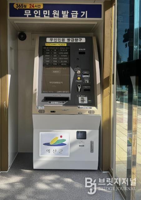 브릿지저널 정보영 기자 | 예산군은 지난 26일 예산군청(실외)과 예산읍(실외)에 설치된 노후 무인민원발급기 2대를 교체했다.
