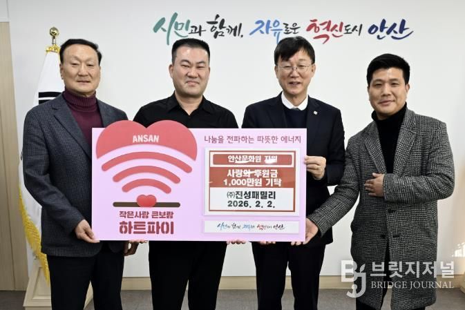 브릿지저널 김경미 기자 | 안산시는 지난 2일 ㈜진성패밀리로부터 후원금 3,000만 원을 기탁받았다고 3일 밝혔다.