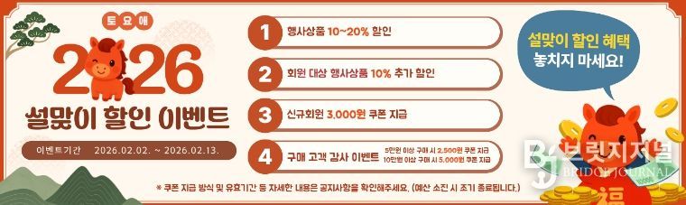 브릿지저널 김경미 기자 | 의령군은 민족 최대의 명절 설을 맞아 2월 2일부터 13일까지 12일간, 의령군 온라인 쇼핑몰 ‘토요애’에서 설맞이 할인이벤트를 진행한다고 밝혔다.