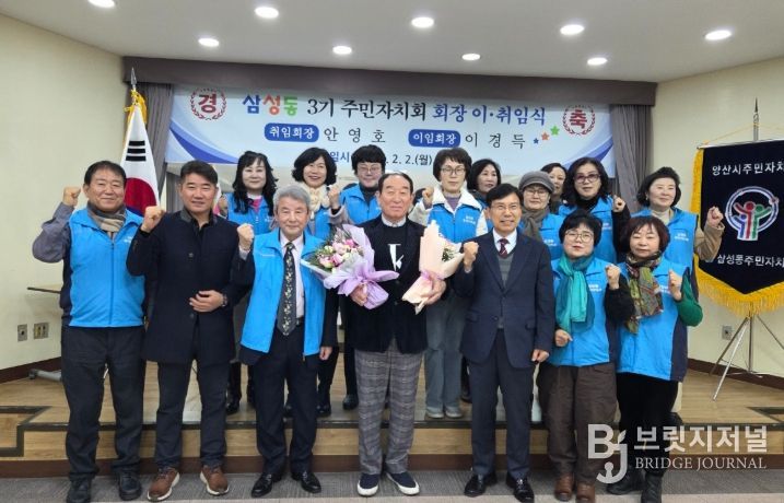 브릿지저널 김경미 기자 | 양산시 삼성동 주민자치회는 지난 2일 행정복지센터 3층 대회의실에서 주민자치회장 이·취임식을 개최했다.