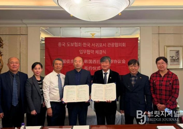 브릿지저널 정보영 기자 | (사)서귀포시관광협의회는 중국걷기협회와 3일, 북경 베이징 구루 접견실에서 양 기관이 주관하는 유채꽃 국제걷기대회와 북경 걷기대회를 성공적으로 추진하기 위해 업무협약을 체결했다고 밝혔다.