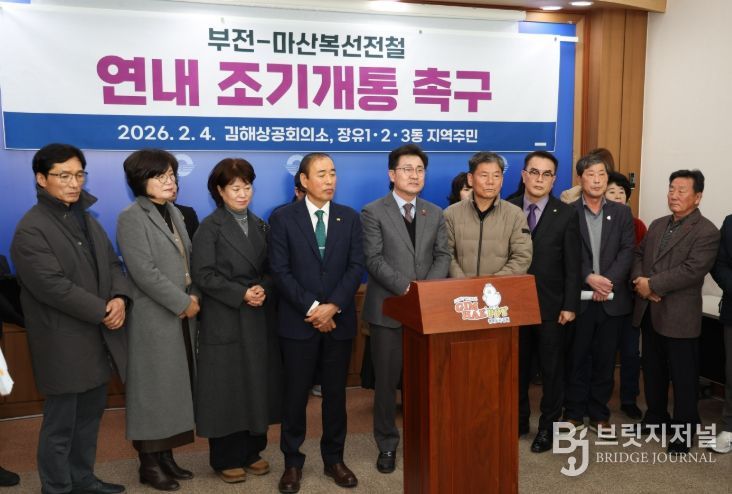 브릿지저널 김경미 기자 | 김해시 상공계와 시민들은 4일 오전 11시 김해시청 브리핑룸에서 부전-마산복선전철의 연내 조기 개통을 강력 촉구했다.