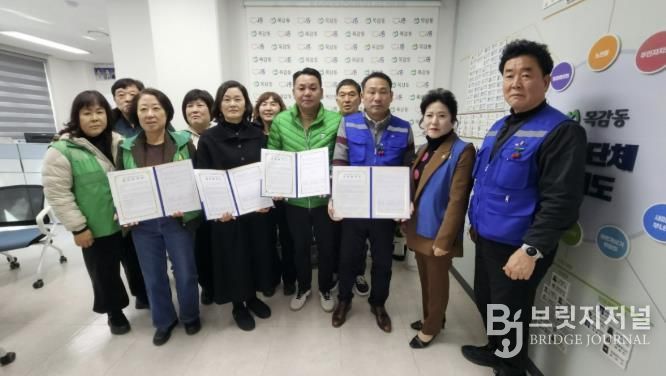 브릿지저널 김경미 기자 | 시흥시 목감동 행정복지센터는 지난 2월 3일 취약계층의 복지증진과 복지 사각지대 해소를 위해 동 행정복지센터 회의실에서 목감동 새마을남녀협의회 및 시흥시 처음처럼 봉사회 등 관계단체와 업무협약을 맺었다.