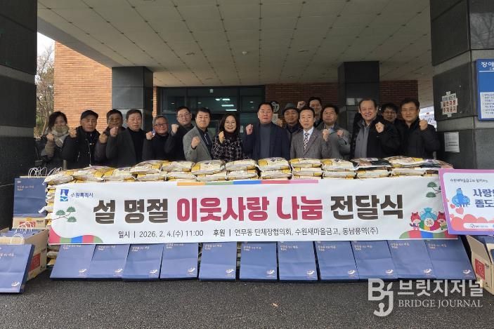 브릿지저널 김경미 기자 | 수원시 장안구 연무동 행정복지센터는 지난 4일, 설 명절을 맞아 관내 어려운 이웃을 위한 나눔 전달식을 개최했다.
