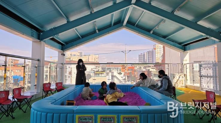 특히 야외 테라스에 설치된 핑크 모래 놀이터는 아이들에게 인기 만점이다.