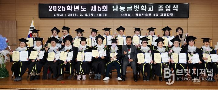 브릿지저널 김경미 기자 | 인천시 남동구는 초등학습 과정으로 운영 중인 ‘남동글벗학교’가 남동구 평생학습관 채움강당에서 제5회 졸업식을 개최했다고 6일 전했다.