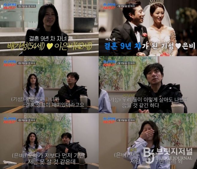 브릿지저널 김경미 기자 | TV CHOSUN 극사실주의 다큐 예능 ‘조선의 사랑꾼’에 합류한 '결혼 9년 차' 배기성♥이은비 부부가 서로를 향한 진한 애정으로 감동을 자아낸다.