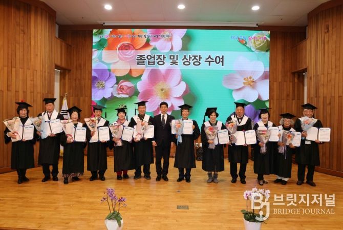 특히 1년간의 대학 생활을 담은 졸업 문집 「행로(幸福한 老人의 길) 21집」을 이태훈 총장에게 전달하는 시간이 마련돼 큰 박수를 받았다.