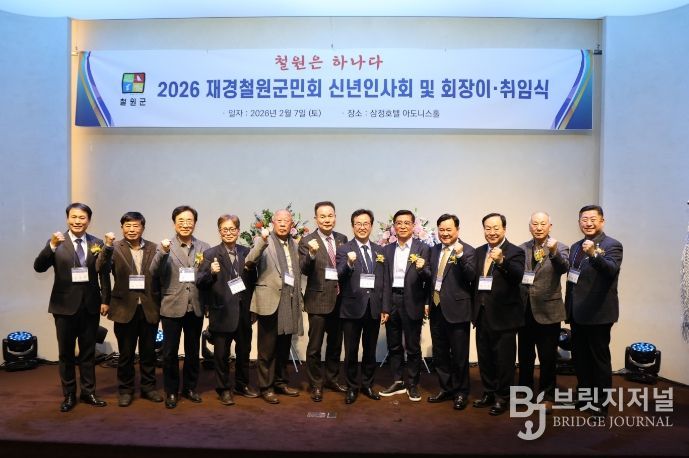 브릿지저널 윤나영 기자 | 철원군은 2월 7일 오후 6시 서울 삼정호텔에서 열린 '2026년 재경철원군민회 이취임식 및 신년인사회'에 참석해 재경철원군민회의 새 출발을 축하하고, 철원군과 수도권 향우 간 상생 협력 강화 의지를 밝혔다.