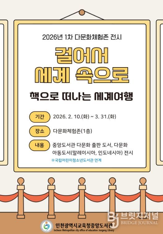 브릿지저널 김경미 기자 | 인천광역시교육청중앙도서관은 2월 10일부터 3월 31일까지 1층 다문화체험존에서 ‘책으로 떠나는 세계여행’ 전시를 개최한다.
