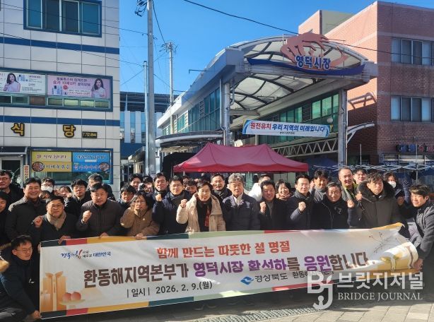 브릿지저널 정보영 기자 | 경상북도 환동해지역본부는 2월 9일, 2021년 화재로 전소된 영덕전통시장의 재건축 완료 및 재개장을 기념해 설맞이 장보기를 실시했다. 이번 행사는 대형 화재로 삶의 터전을 잃었던 상인들을 위로하고, 새롭게 출발하는 영덕시장의 도약을 응원하기 위해 마련됐다.