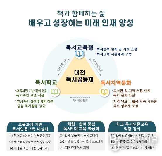 대전시교육청은 이번 계획을 통해 ‘대전독서교육청’으로서의 정체성을 확립하겠다는 포부다. ‘읽는 학교’를 넘어 ‘생각하는 교실’로, ‘개인의 독서’를 넘어 ‘사회적 독서’로 나아가기 위해 ‘대전독서학교’ 시스템을 가동하고 학교와 가정, 지역사회가 연결된 독서 생태계를 조성하는 데 교육청의 역량을 집중할 방침이다.