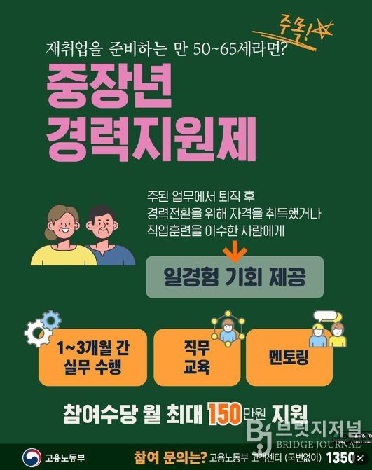 브릿지저널 김경미 기자 | ■ 재취업을 준비하는 만 50~65세라면? 중장년 경력지원제