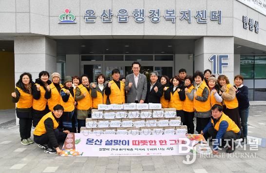 브릿지저널 윤나영 기자 | 울주군 온산읍 지역사회보장협의체가 설명절을 맞아 10일 온산읍 행정복지센터에서 저소득 독거노인과 장애인 등 지역 취약계층 100세대를 대상으로 설맞이 먹거리 꾸러미를 전달했다.