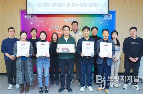 브릿지저널 윤나영 기자 | 강원관광재단은 지난 9일 설 명절을 앞두고 공직사회의 청렴 문화 확산과 청탁금지법 준수 의식 제고를 위해 청탁금지법 준수 청렴 캠페인을 실시했다.