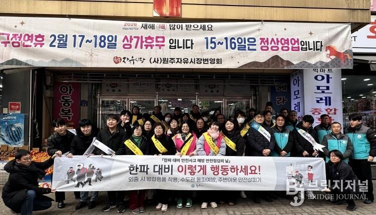 브릿지저널 윤나영 기자 | 원주시는 2월 안전점검의 날을 맞아 10일 자유시장 일원에서 한파 대비 안전사고 예방 캠페인을 전개했다.