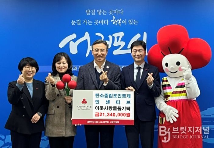 브릿지저널 정보영 기자 | 서귀포시는 10일 지역 내 어려운 이웃을 위해 2023년도 하반기와 2024년도 상반기 탄소중립포인트제 인센티브 21,340천 원 상당의 상품권을 제주사회복지공동모금회에 지정 기탁했다.