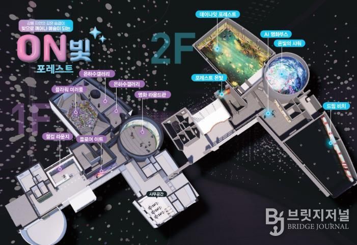 구)숲사랑홍보관을 지방소멸대응 기금 지원으로 재탄생시킨 이 공간은 빛의 숲을 테마로 한 몰입형 미디어 아트 전시 · 체험 시설이다.