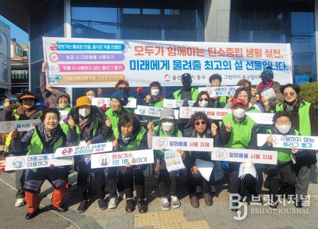 브릿지저널 윤나영 기자 | 울산 동구는 2월 11일 오후 2시 대송동 농수산물시장 일원에서 그린리더동구협의회 회원(회장 김길주) 40여 명과 함께 ‘친환경 설 명절 보내기’ 캠페인을 했다.