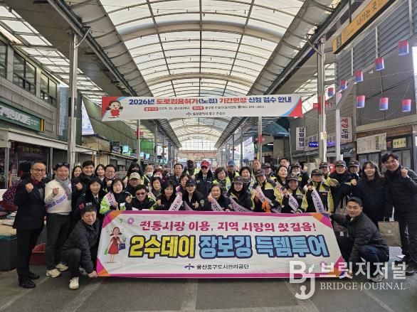 브릿지저널 윤나영 기자 | 울산중구도시관리공단이 설 명절을 맞아 2월 11일 오후 2시 구역전시장에서 ‘전통시장 활성화 홍보 활동(캠페인) 및 장보기 행사’를 진행했다.