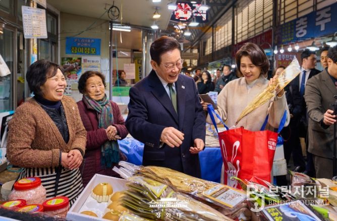 브릿지저널 김경미 기자 | 이재명 대통령과 김혜경 여사는 오늘 낮, 설 명절을 앞두고 충북 충주시에 위치한 무학시장을 찾아 지역 세밑 물가를 점검하고 상인들을 만나 현장 의견을 청취했다.