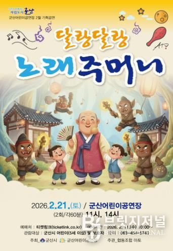 브릿지저널 윤나영 기자 | 군산어린이공연장이 21일 어린이를 위한 국악극 ‘달랑달랑 노래 주머니’를 선보인다.