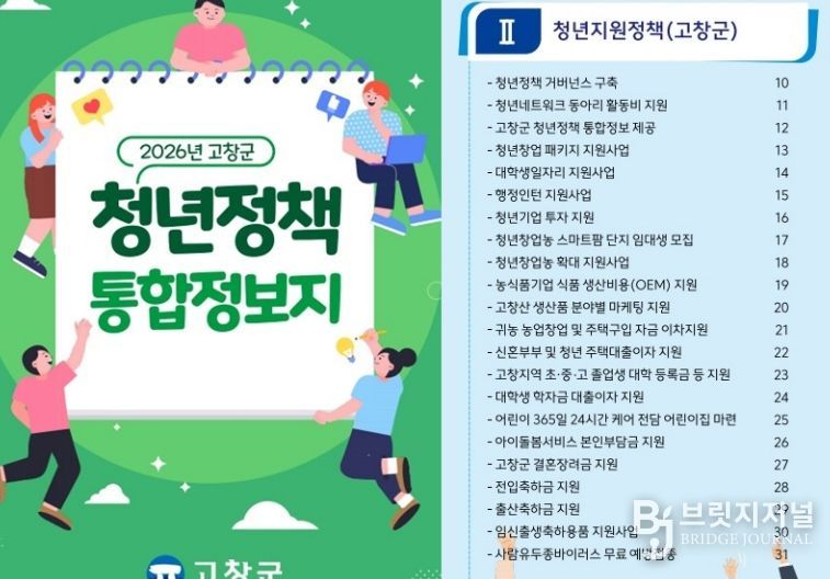 브릿지저널 윤나영 기자 | 전북 고창군이 청년정책을 한눈에 확인할 수 있는 ‘2026년 고창군 청년정책 통합정보지’를 발간했다.