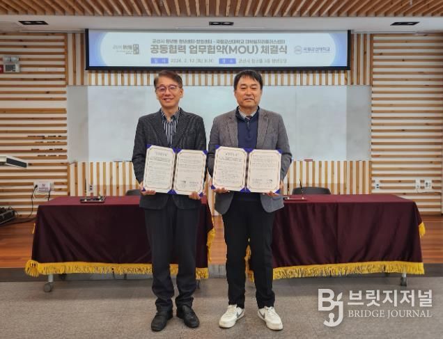 브릿지저널 윤나영 기자 | 군산시 청년뜰(청년센터·창업센터)과 국립군산대학교 대학일자리플러스센터가 국립군산대학교 재학생·졸업생을 포함한 지역 청년들에게 실질적인 취업 지원 서비스를 제공하기 위한 업무협약(MOU)을 12일 체결했다