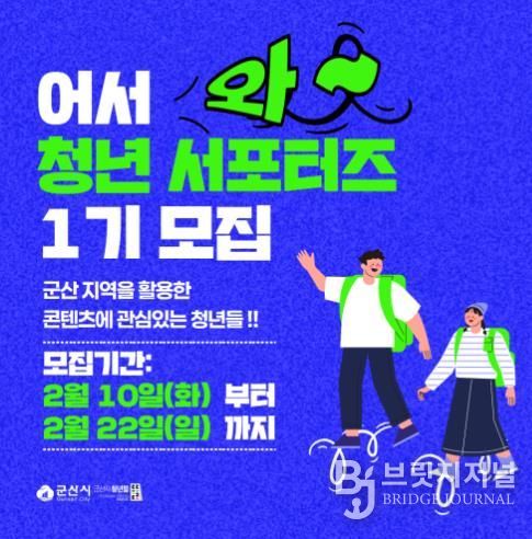 브릿지저널 윤나영 기자 | 군산시 청년뜰(청년센터·창업센터)이 군산의 숨은 가치를 청년의 시각으로 재발견하고, 이를 콘텐츠로 널리 알릴 ‘군산 청년 서포터즈 1기’를 공개 모집한다.