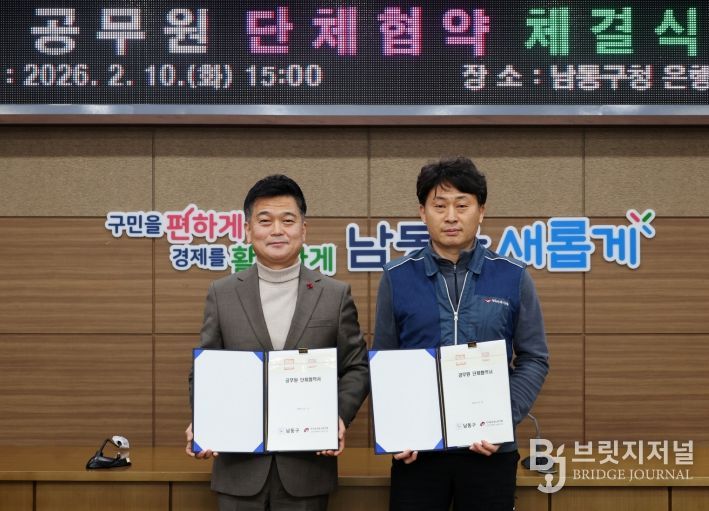 브릿지저널 김경미 기자 | 인천시 남동구는 전국공무원노동조합 인천지역본부 남동구지부(지부장 김성만)와 '공무원 단체협약'을 체결했다고 13일 전했다.