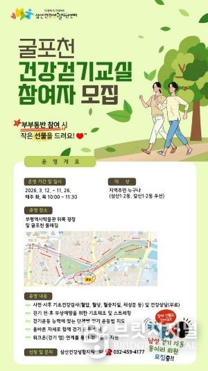 브릿지저널 김경미 기자 | 부평구보건소 삼산건강생활지원센터는 지난 11일 주민과 함께 ‘동네 걷기 좋은 길’ 코스 발굴과 지도 제작을 위한 주민건강모임을 추진했다고 밝혔다.