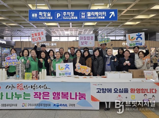 브릿지저널 정보영 기자 | 구미시는 설 명절을 맞아 2월 13일 구미역 대합실에서 귀성객을 대상으로 고향사랑기부제 홍보 캠페인을 진행했다. 이번 캠페인은 고향을 찾은 시민들에게 명절 인사를 전하고, 고향사랑기부제를 통해 지역 발전에 동참할 수 있는 방법을 알리기 위해 마련됐다.