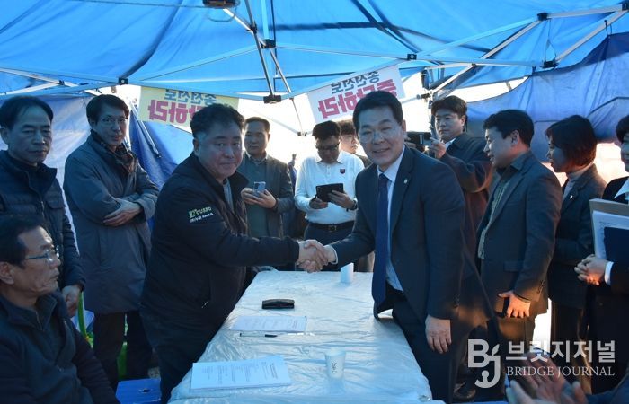 브릿지저널 윤나영 기자 | 부안군은 권익현 부안군수가 지난 13일 부안군청 앞에서 집회 중인 초고압 송전철탑 백지화 부안군 대책위원회 천막을 방문해 약 1시간 동안 면담을 진행하는 등 소통에 나섰다고 밝혔다.
