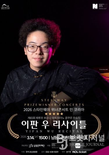 브릿지저널 김경미 기자 | 인천시 남동구 남동문화재단은 제65회 페루초 부소니 국제 피아노 콩쿠르 우승자인 이판 우(YIFAN WU)의 피아노 리사이틀 공연을 남동소래아트홀에서 3월 14일 15시에 개최한다고 19일 전했다.