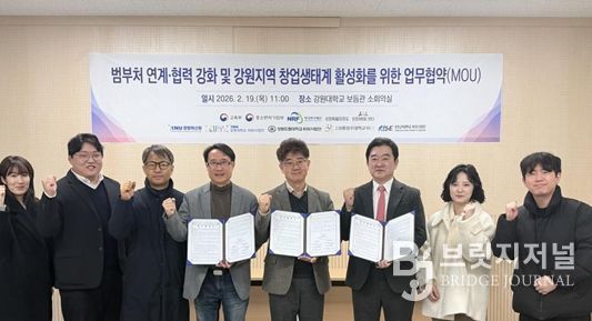 브릿지저널 윤나영 기자 | 강원도립대학교 라이즈(RISE) 사업단 로컬창업센터는 2월 19일 강원대학교 보듬관에서 강원대학교 KNU 창업혁신원, 강원대학교 라이즈(RISE) 사업단, 강릉원주대학교 라이즈(RISE) 사업단 등과 함께 범부처 연계·협력 강화 및 강원지역 창업생태계 활성화를 위한 업무협약(MOU)을 체결했다고 밝혔다.