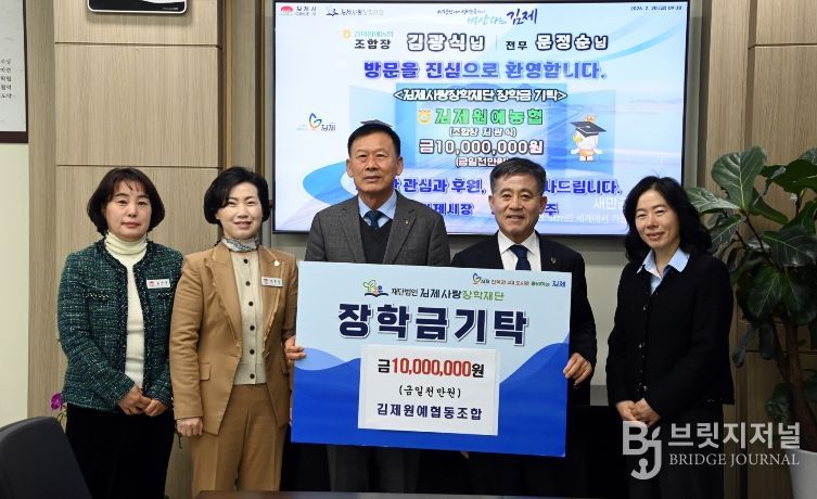 브릿지저널 윤나영 기자 | 김제사랑장학재단은 지난 20일 김제원예농업협동조합(조합장 김광식, 이하 김제원예농협)이 지역의 미래를 짊어질 우수 인재 양성을 위해 장학금 1천만 원을 기탁했다고 밝혔다.