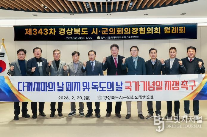 브릿지저널 정보영 기자 | 울릉군의회는 지난 20일 제343차 경상북도 시·군의회의장협의회 월례회를 개최하고 영토 주권과 소멸위기 지역의 정치적 생존권 확보를 위한 핵심 결의안 2건을 만장일치로 채택했다.