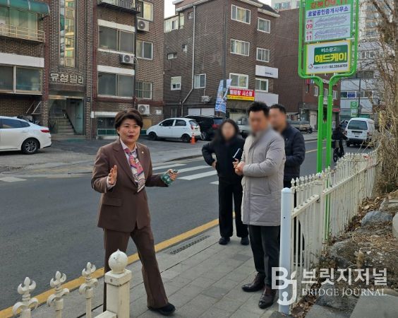 브릿지저널 김경미 기자 | 강북구의회 김명희 의장(번1·2동, 수유2·3동)은 지난 2월 20일, 번2동 오현로31길 일대 버스정류장 관련 민원 현장을 찾아 주민 불편 사항을 직접 확인했다. 이날 현장에는 강북구청 김석용 교통행정과장과 신하형 도로관리과장, 번동5단지 관리소 관계자가 함께 참석해 현황을 공유하고 개선 방향을 논의했다.