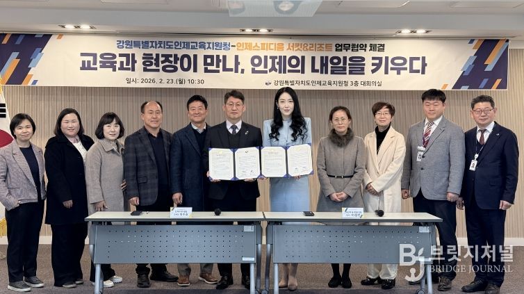 브릿지저널 윤나영 기자 | 강원특별자치도인제교육지원청은 2월 23일 10시 30분 인제교육지원청 3층 대회의실에서 인제스피디움 서킷&리조트(대표 이정민)와 지역 연계 체험형 교육 활성화 및 미래인재 양성을 위한 업무협약(MOU)을 체결했다.