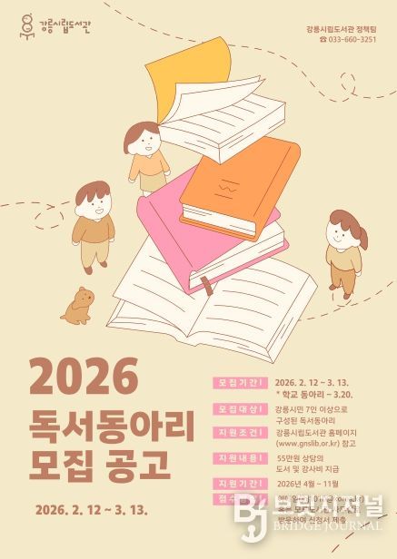 브릿지저널 윤나영 기자 | 강릉시립도서관은 지역 내 독서 문화 활성화와 시민 간 문화 교류 증진을 위해 '2026년도 독서동아리 지원사업'을 운영한다.
