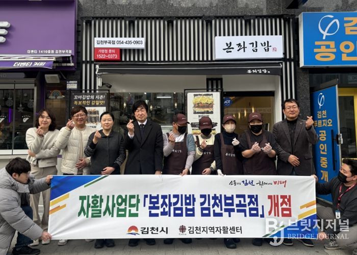 브릿지저널 정보영 기자 | 김천지역자활센터는 2월 23일 김천시 부곡동(푸르지오아파트 상가)에 신규 자활근로사업단 '본좌김밥 김천부곡점'을 개점하고 본격적인 운영에 들어갔다.