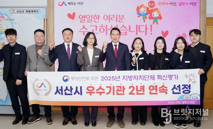 브릿지저널 정보영 기자 | 충남 서산시는 행정안전부가 주관하는 ‘2025년 지방자치단체 혁신평가’에서 2년 연속 우수기관에 선정됐다고 밝혔다.