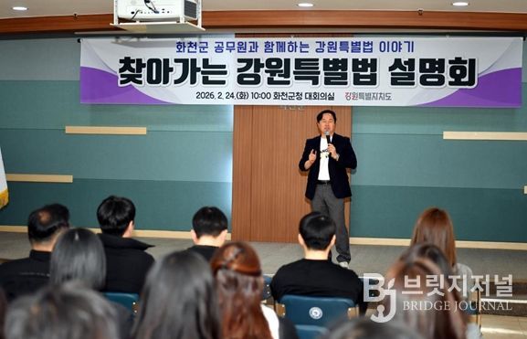 브릿지저널 윤나영 기자 | 강원특별자치도는 2월 24일 화천군청 4층 대회의실에서 화천군 공무원을 대상으로 ‘찾아가는 강원특별법 설명회’를 개최했다.
