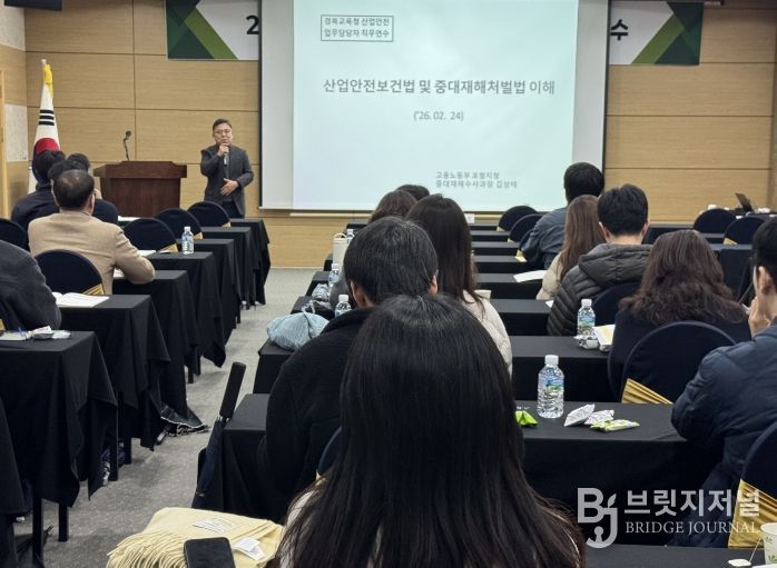 브릿지저널 정보영 기자 | 경북교육청은 24일부터 25일까지 1박 2일간 경주시에 있는 더케이호텔경주에서 도내 22개 교육지원청 업무 담당자 44명을 대상으로 ‘2026 산업안전보건・중대재해 예방 직무연수’를 개최했다고 밝혔다.